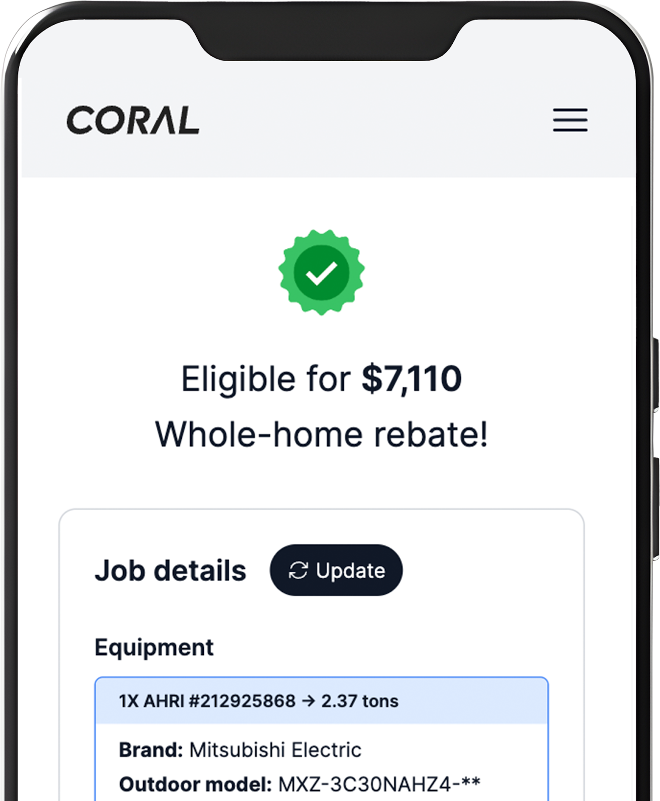 The core product advances eligible rebates to contractors instantly. Coral's AI-powered eligibility engine and automated filing let contractors quote an "instant net price" rather than a confusing mix of list price, rebate forms, and uncertain timing. That changes the sales conversation entirely.